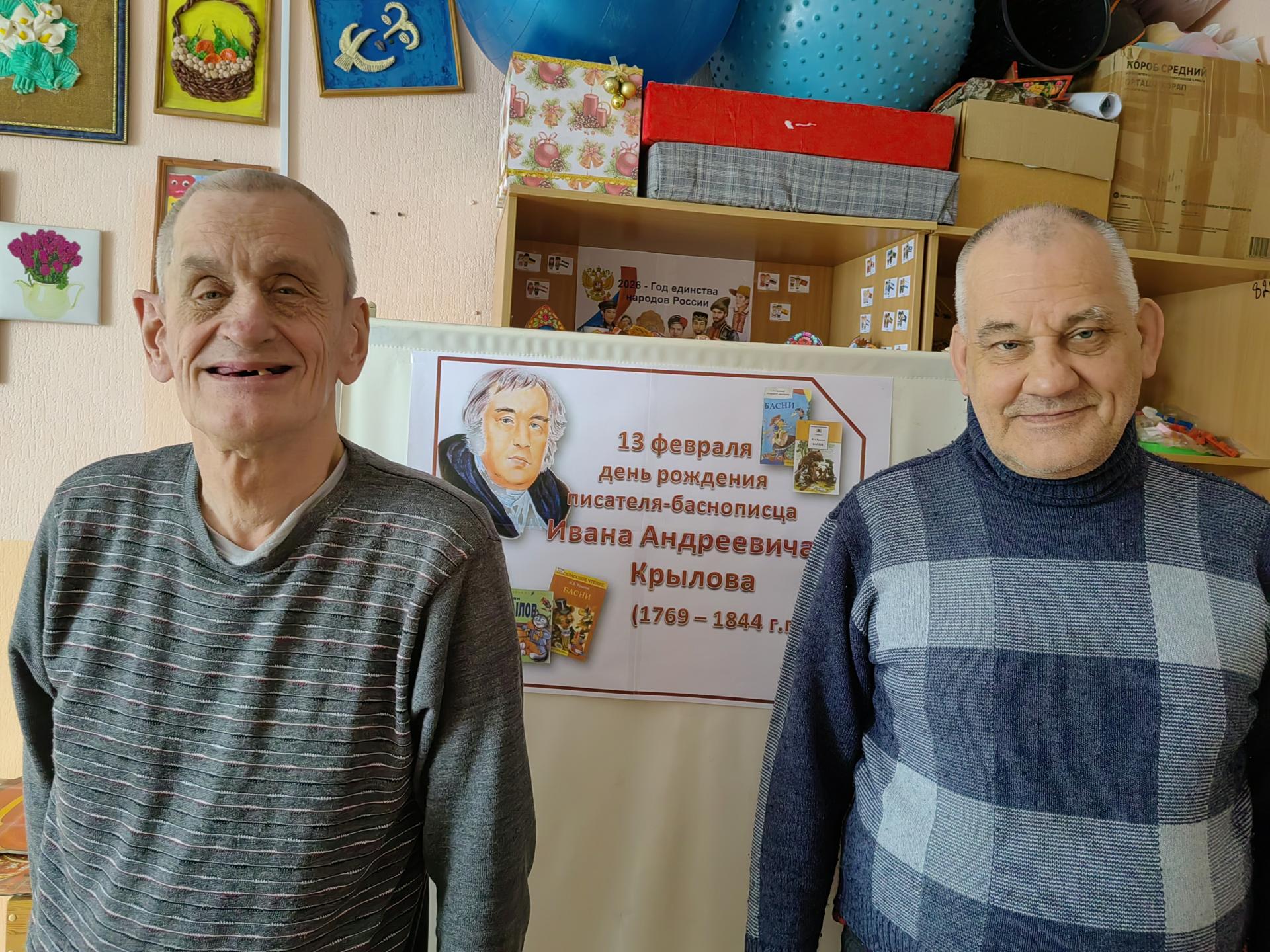13 февраля день рождения Ивана Андреевича Крылова. Баснописец, тонкий лирический поэт, остроумный автор весёлых и злых комедий, издатель сатирико-просветительских журналов. В доме социального обслуживания прошла литературная гостиная «Он баснями себя прославил», для получателей социальных услуг. В ходе мероприятия ребята познакомились с биографией великого баснописца, вспомнили определения терминов «басня», «мораль». Ведь морали басен И.А. Крылова давно превратились в крылатые выражения, стали народными пословицами или веселыми афоризмами. Активное участие ребята приняли в игре-викторине. Ребята не только отвечали на вопросы викторины, но также отгадывали басни, послушав отрывки басен. Они оказались настоящими знатоками творчества писателя, прочитав некоторые из них наизусть. Обсудили, какую свою мораль несет каждая басня, кто главные герои, с какими людьми можно их сравнить. Ребята сделали выводы, что люди должны быть образованными, честными, справедливыми, добрыми и гуманными.