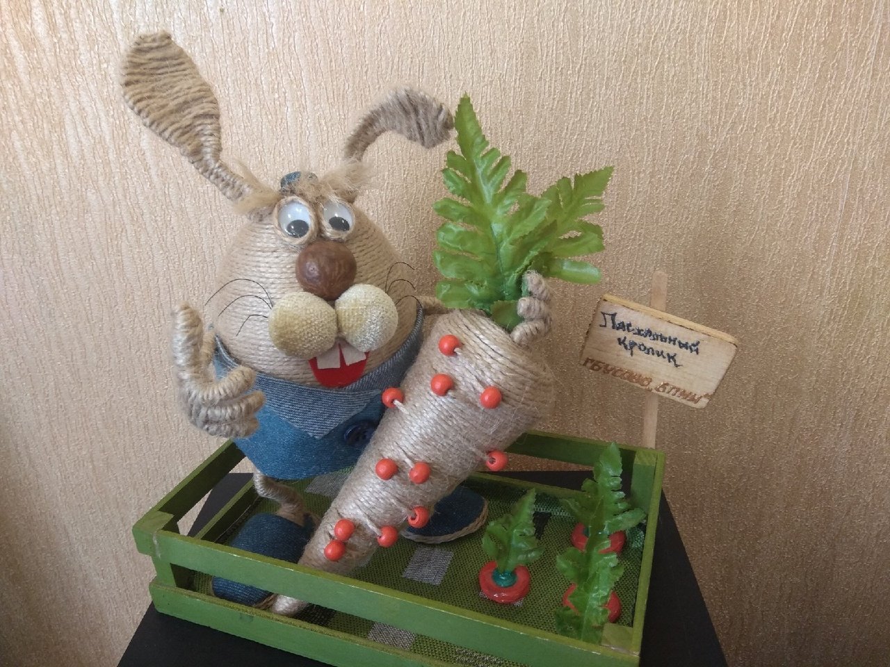 09.04.2019 года в Балакиревском интернате закончено изготовление Пасхальной поделки. Получатели социальных услуг под руководством психолога и инструктора по труду учреждения смастерили своими руками из пенопластовой заготовки и джутовой нити весёлого кролика-огородника.