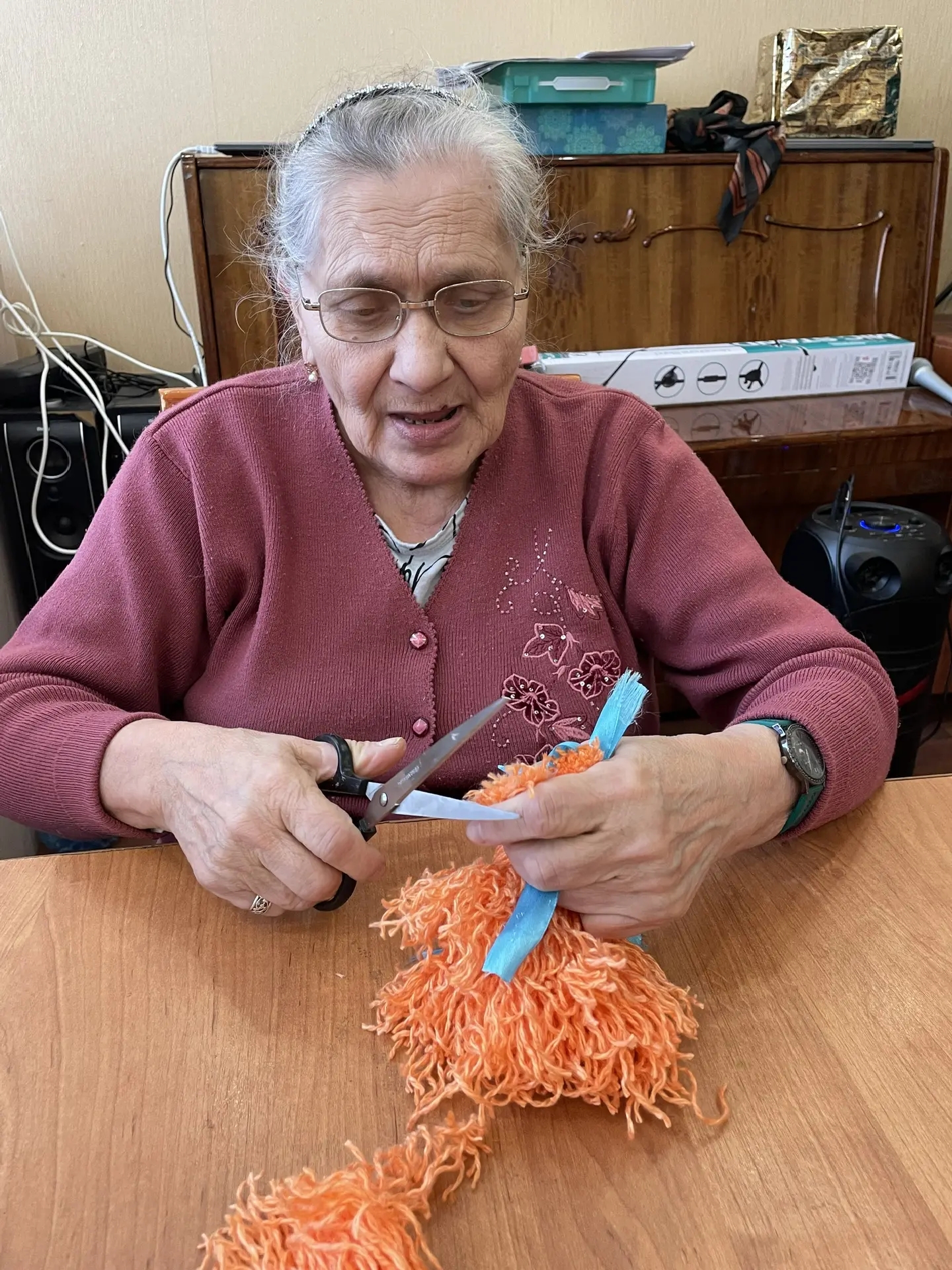 Получателям социальных услуг доступны разнообразные варианты работы с пряжей. Такие творческие занятия способствуют развитию интереса к народным промыслам, эстетического вкуса, коммуникативным способностям. Каждый смог создать уникальную куклу, используя не только нитки, но и разнообразный декор.