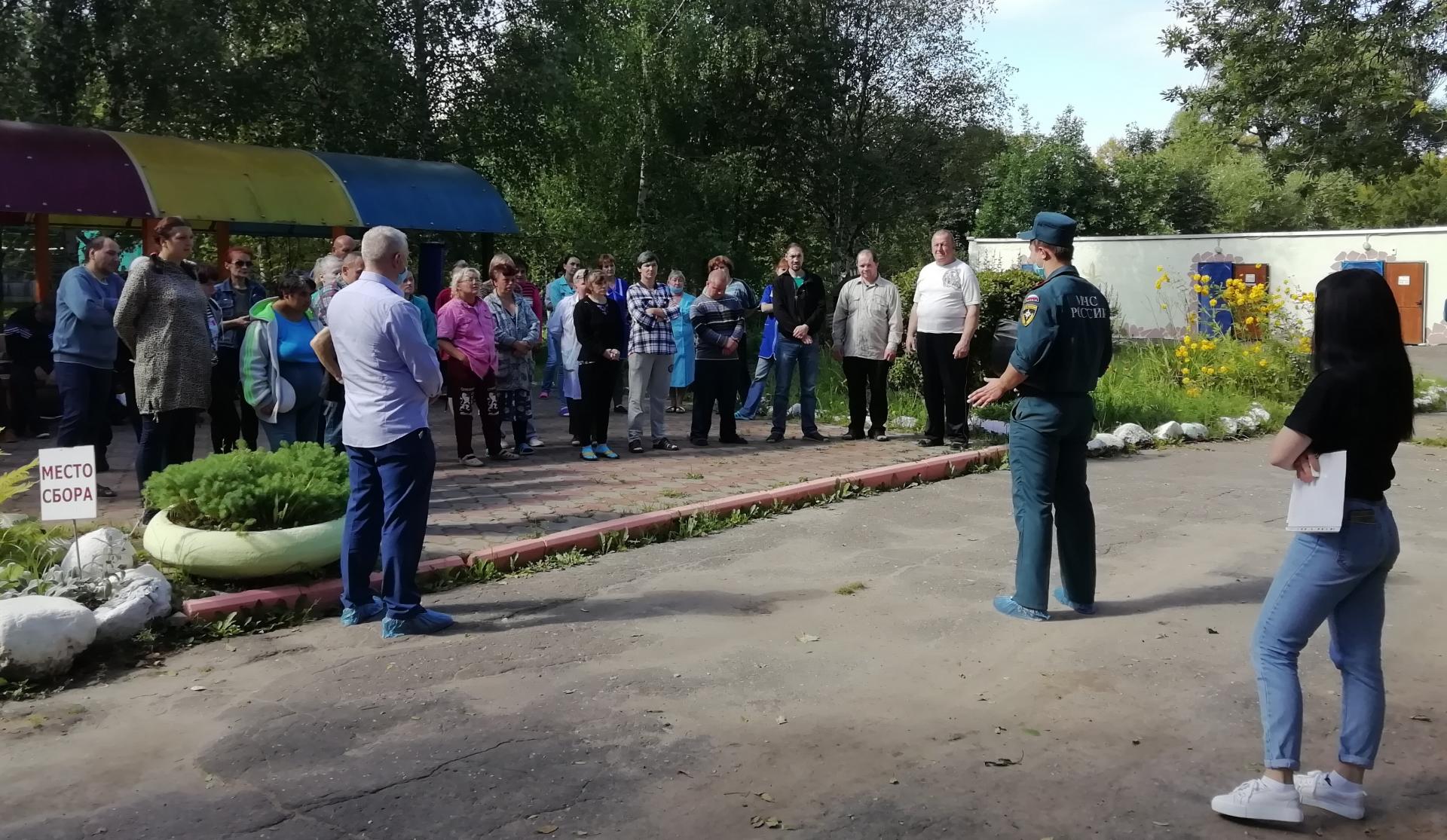 21.08.2020 года в ГБУСОВО «Балакиревский ПНИ» проведена внеплановая дневная тренировка по эвакуации персонала и получателей социальных услуг с участием старшего инспектора 2 ПСО ФПС ГПС Главного управления МЧС России по Владимирской области Сычева А.О. в случае возникновения чрезвычайной ситуации (пожара, террористического акта и т.п.). Перед проведением тренировки была поведена беседа по пожарной безопасности и по возникновению террористической опасности с персоналом интерната и ПСУ. Поставленные цели тренировки были выполнены полностью.